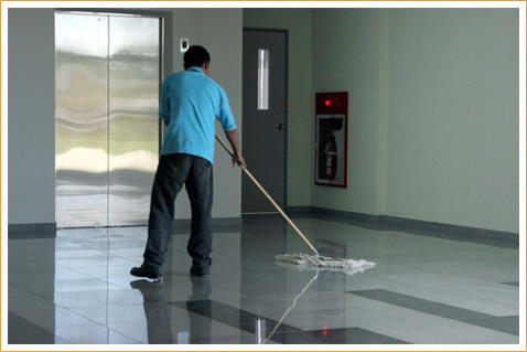 Serviço de limpeza baseado na remoção de sujidades, eliminação de resíduos de tintas, cimento, argamassas, rejuntes, colas, extração de etiquetas, plásticos e papelões de embalagens de proteção e outros materiais em diversas superfícies, inclusive metálicas .